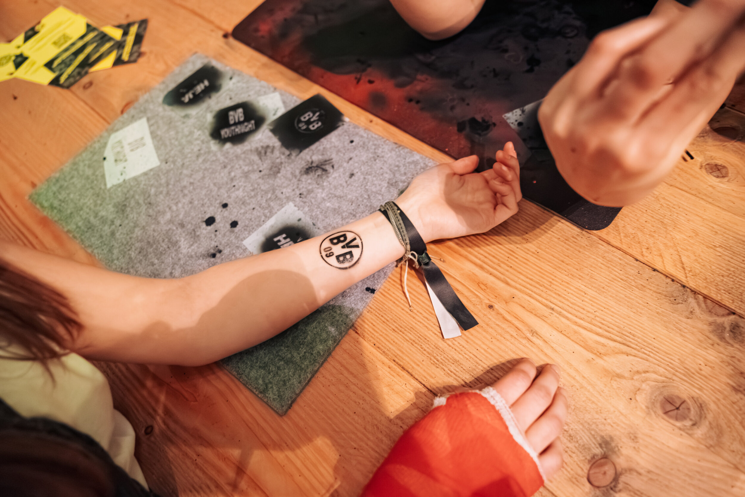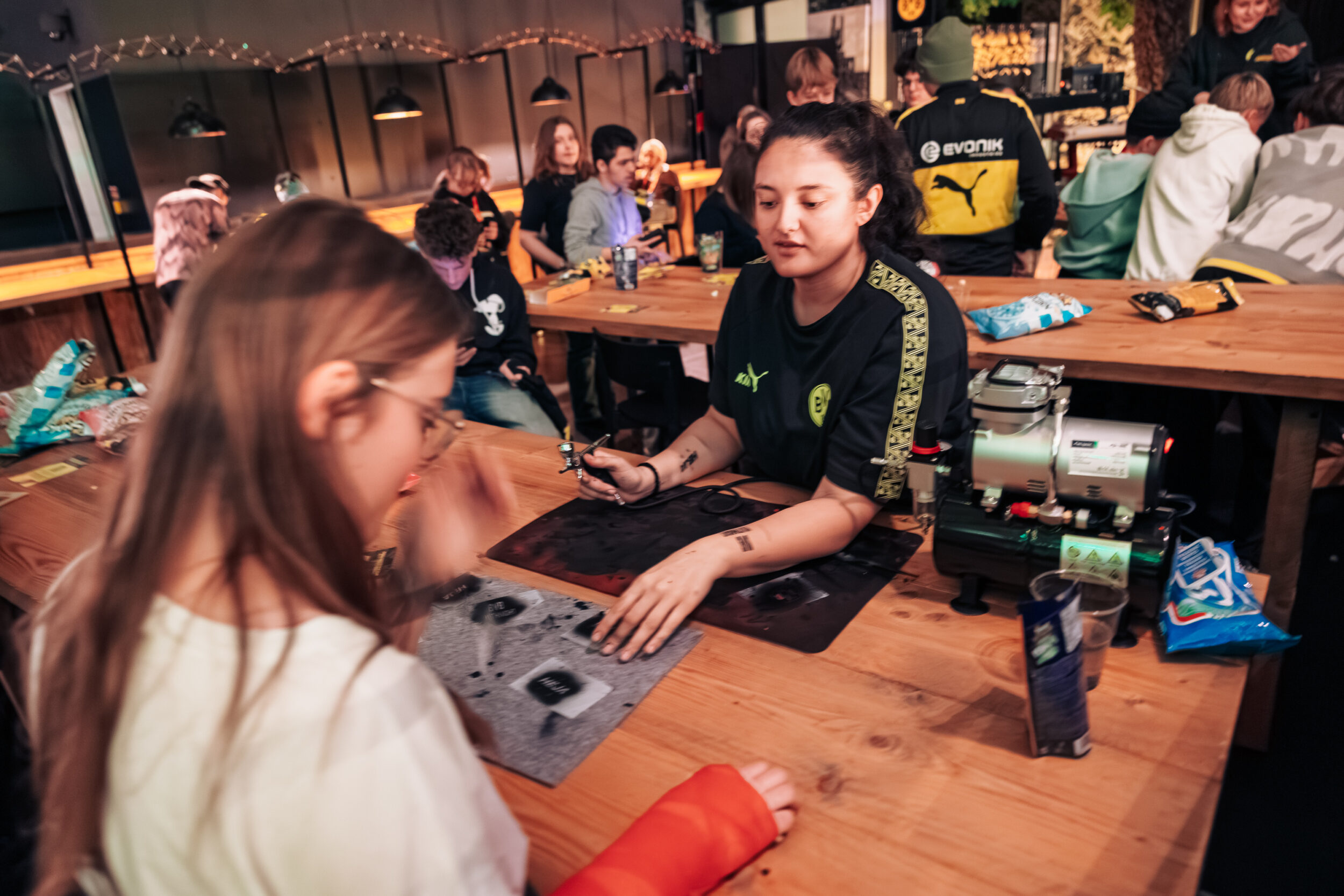 Auch die Airbrush-Station war stark frequentiert. Mit vier verschiedenen BVB-Logos in schwarzer Farbe konnten sich die Gäste individuell verzieren lassen. Diese Aktion war schnell, unkompliziert und persönlich, denn jeder Gast nahm ein sichtbares Andenken mit. So blieb das Event nicht nur vor Ort präsent, sondern auch darüber hinaus im Alltag der Besucher.
