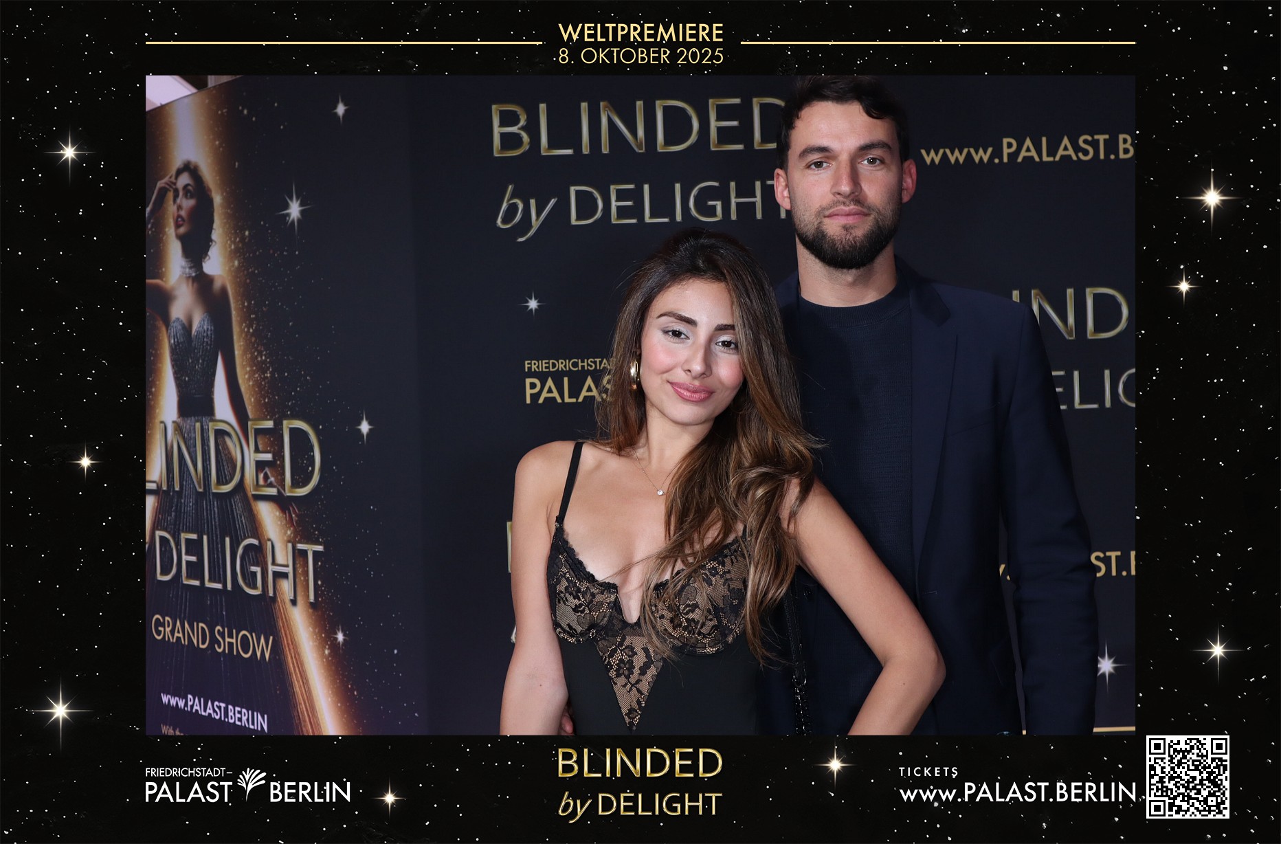 Zur Weltpremiere von Blinded by Delight wurde der Friedrichstadt-Palast zur Bühne für ein besonderes Veranstaltungserlebnis. Ergänzend zur Premiere kam eine Photobooth als interaktive Aktion für die Gäste zum Einsatz. Sie fügte sich in den Premierenabend ein und bot eine zusätzliche Möglichkeit, diesen Anlass festzuhalten.