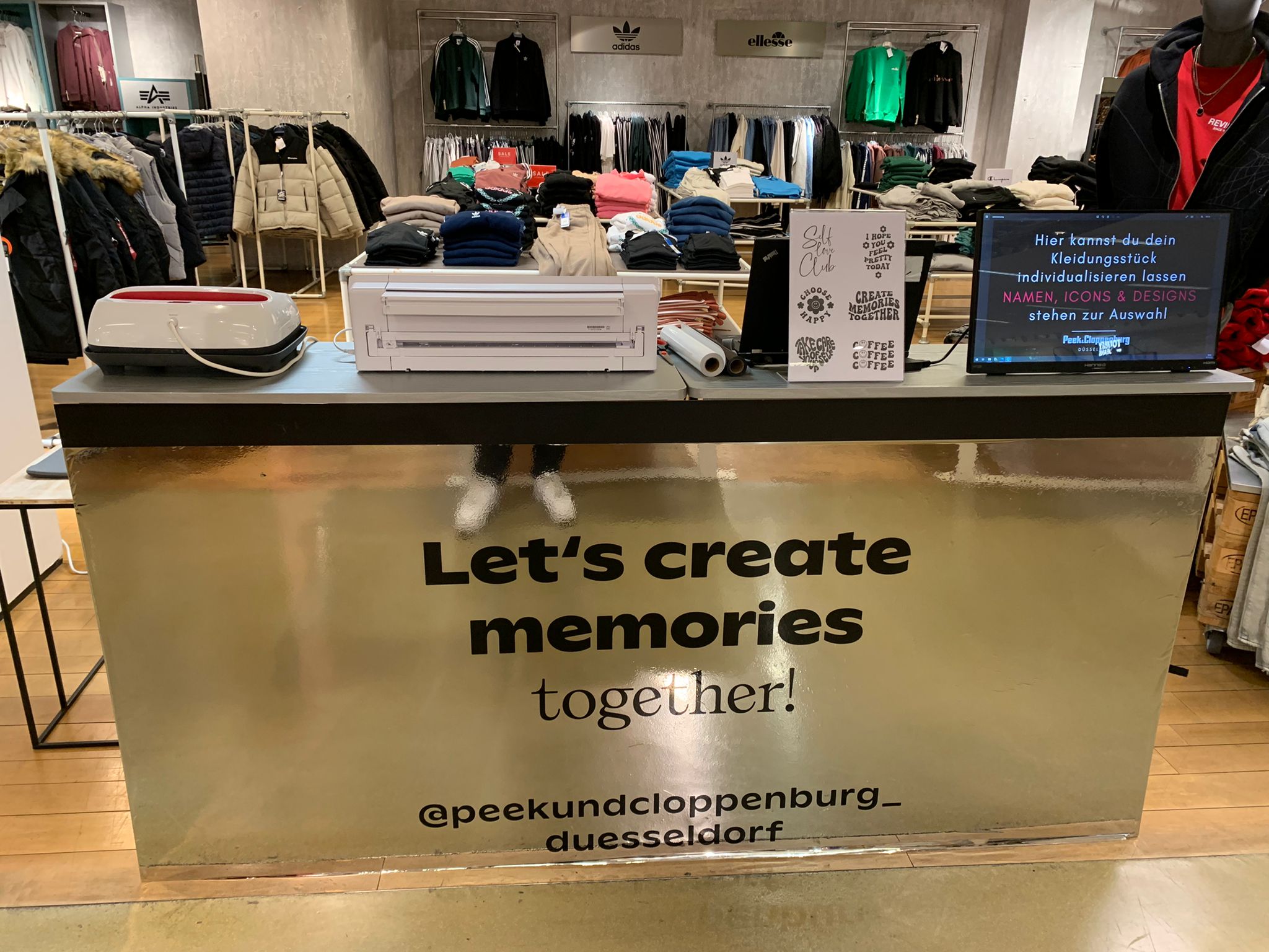Neben der Individualisierung von Give Aways oder eigenen Produkten (Flaschen, Handyketten, Beautyboxen,...), kann diese Aktion z.B. ebenfalls in Fashionstores zur Kaufförderung am POS genutzt werden und somit den Kunden ermöglichen, ihre gekauften Produkte direkt vor Ort mit Schriften und Grafiken zu individualisieren.