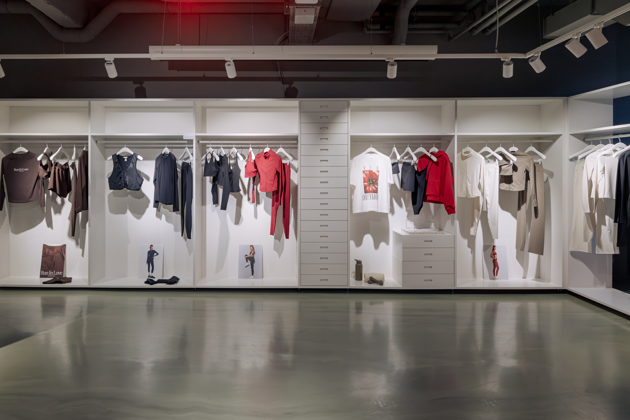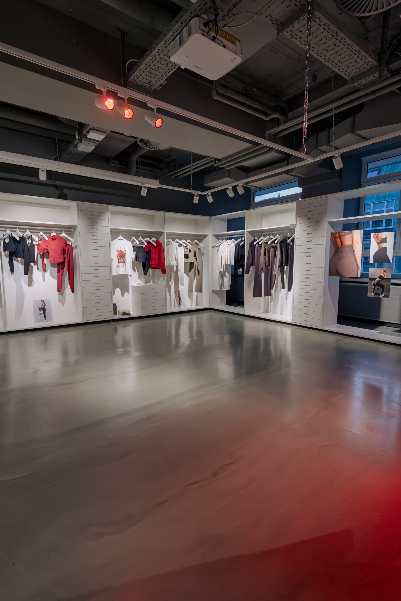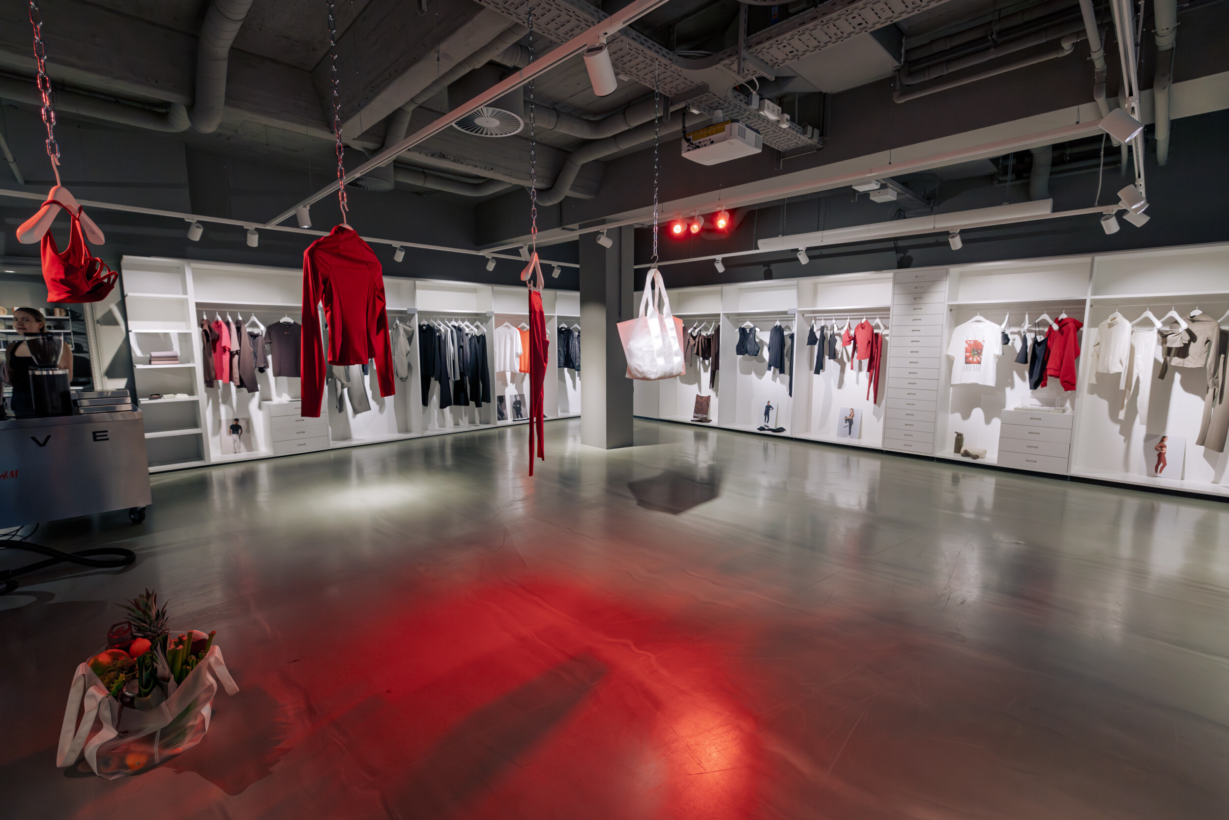 Der H&M Showroom bildete den Kern der Veranstaltung. Hier wurden die Produkte der H&M Move Linie präsentiert und Gespräche mit Gästen geführt. Die Location bot einen klaren Rahmen für die Aufnahmen der Kollektion.