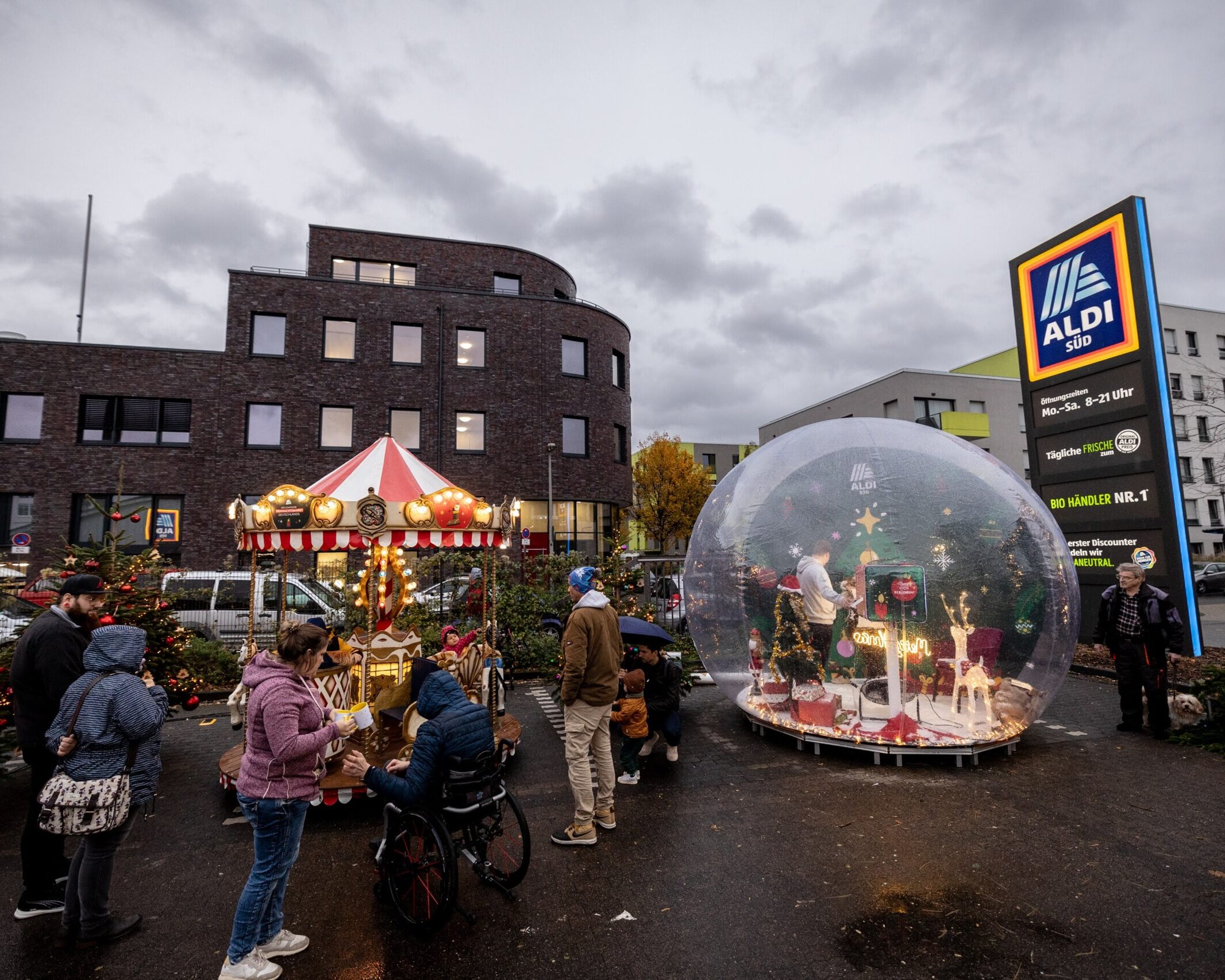 Die XXL-Schneekugel auf ALDI Süd's günstigstem Weihnachtsmarkt Deutschlands