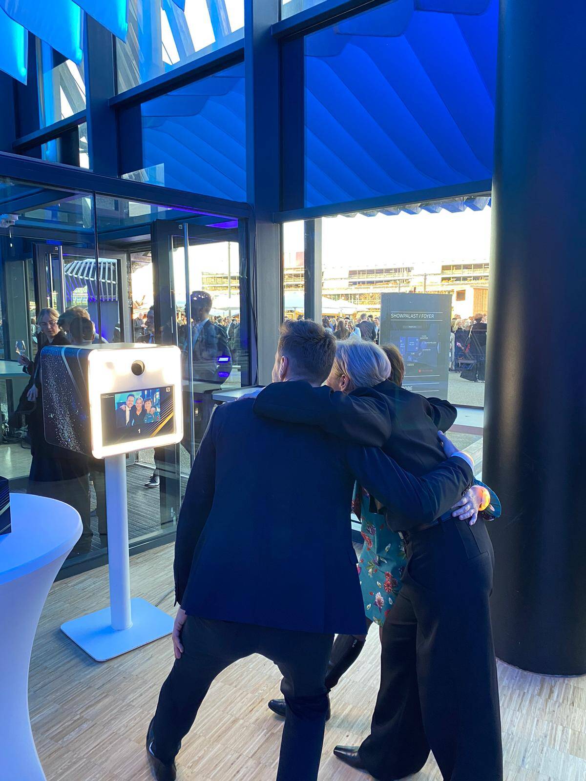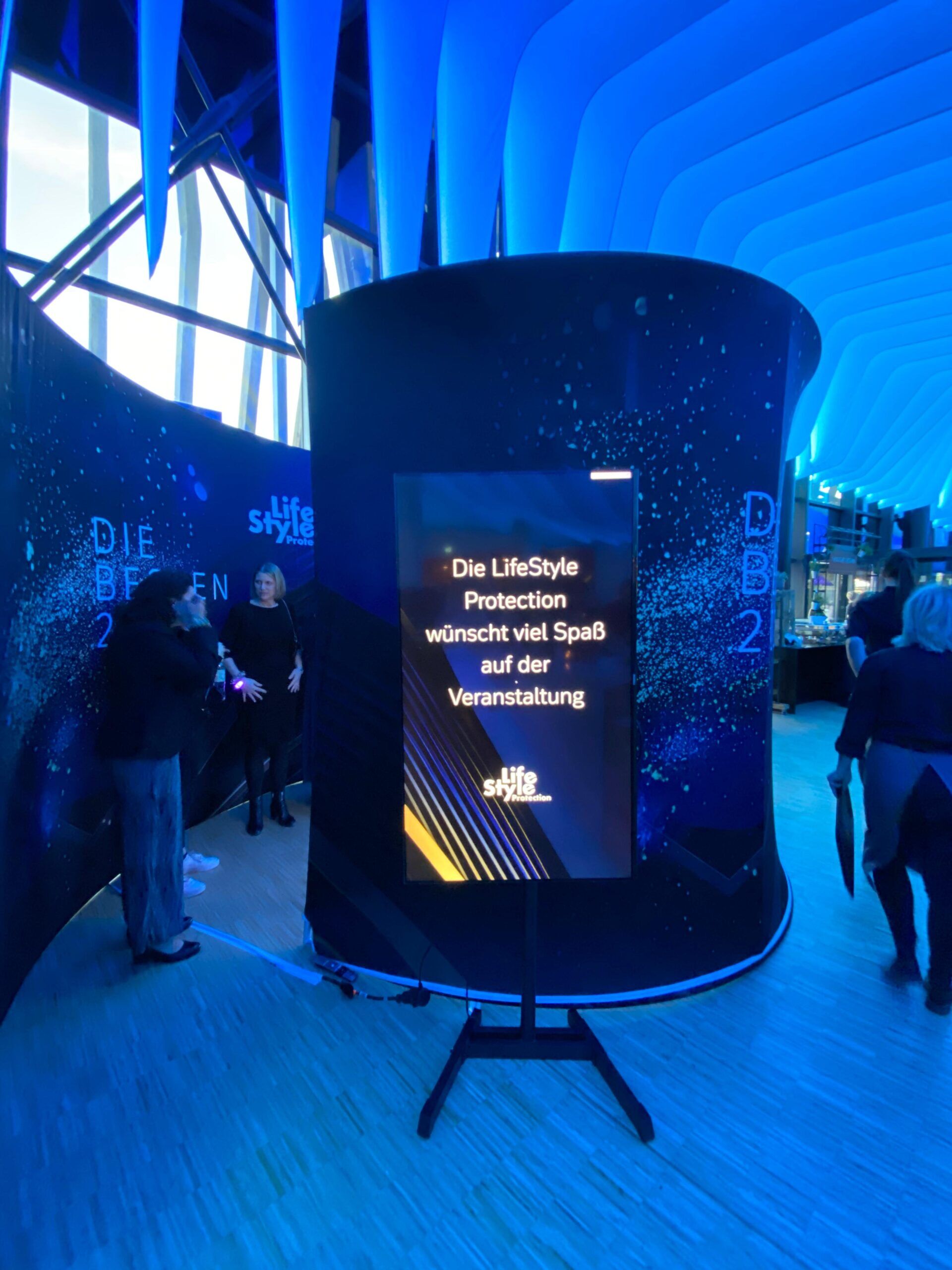 Die Spinbooth mit ihrem 360-Grad-Hintergrund war zweifellos der Star des Abends. Unser Betreuungspersonal sorgte dafür, dass jeder Moment perfekt eingefangen wurde und die Gäste sich wie echte Stars fühlten. Auf der Monitorsäule wurden die aufgenommenen Videos anschließend automatisch eingespielt und zu einer Slideshow verarbeitet.