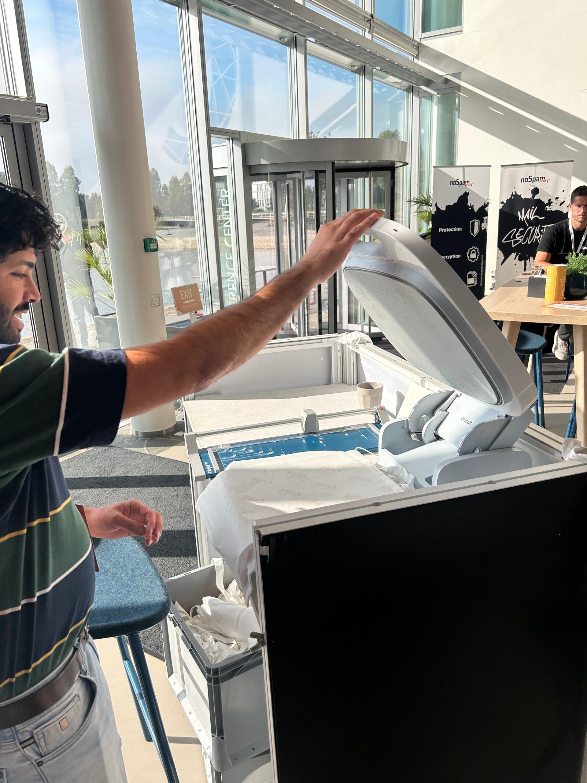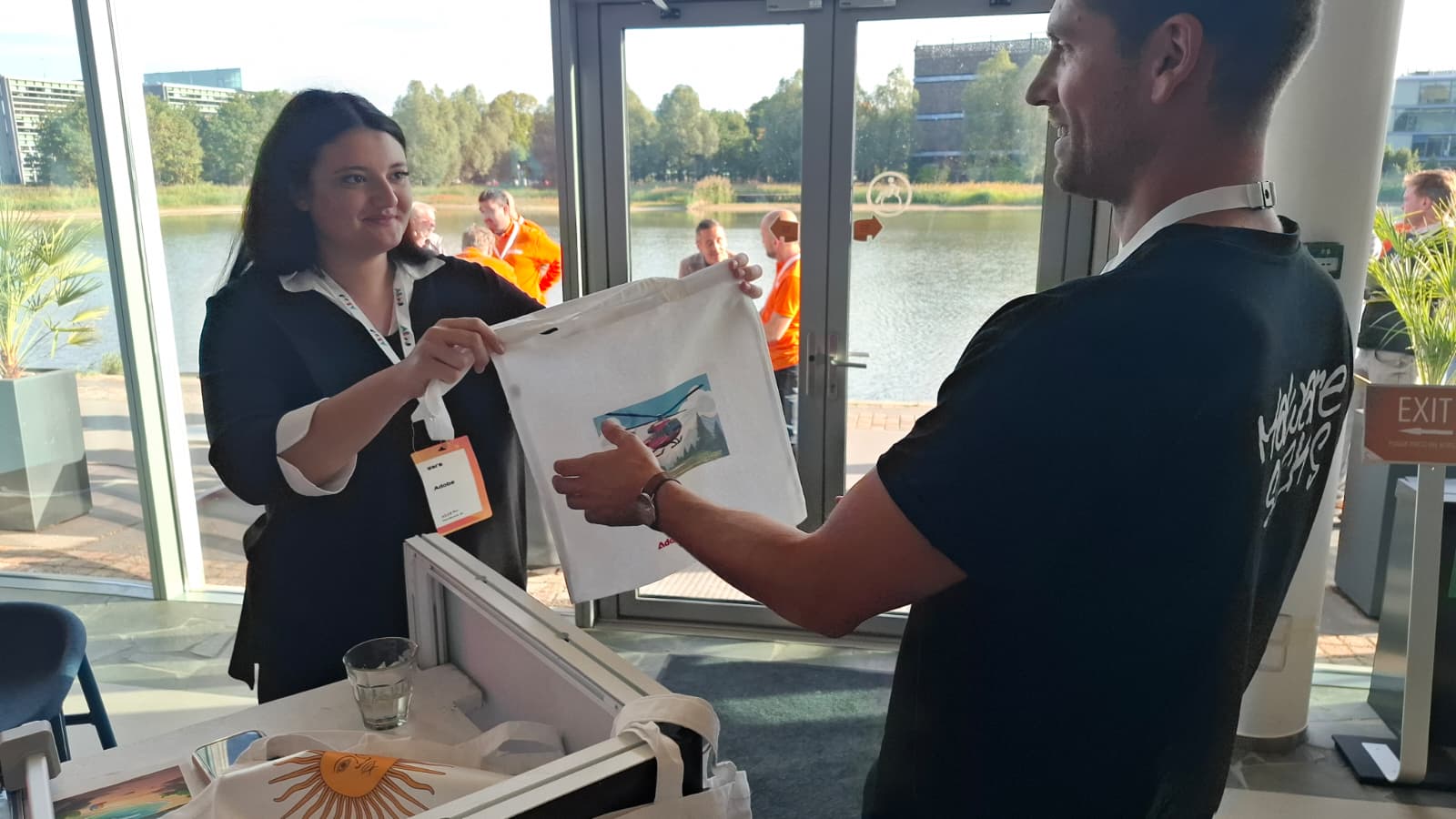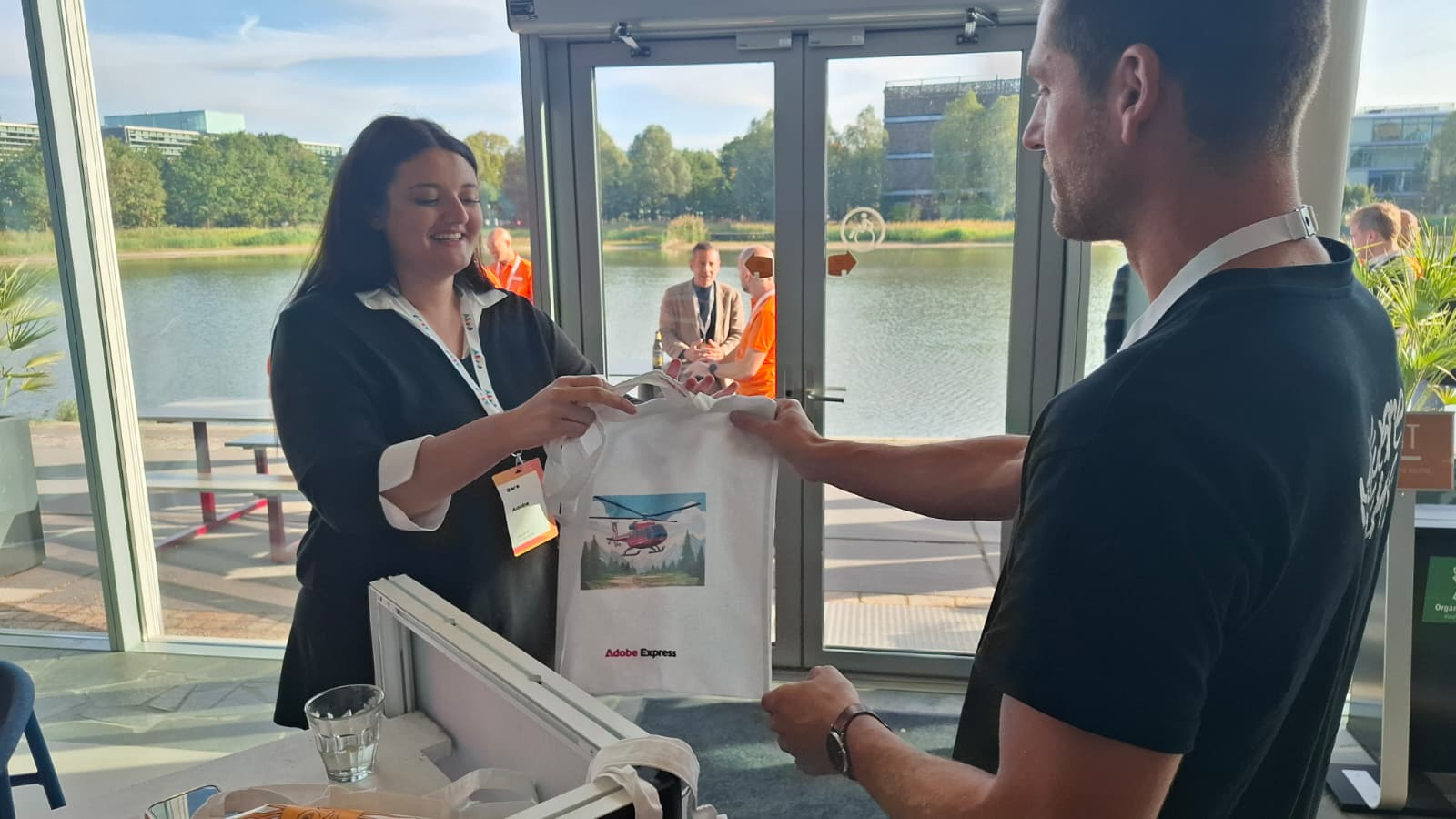 Die Gäste konnten zwischen zwei Motiven wählen, und die Designs wurden direkt auf hochwertige Shirts übertragen. So entstand ein persönliches Erinnerungsstück, das die Besucher sofort mitnehmen und stolz tragen konnten. Der Transferdruck kombinierte damit Interaktion und Branding, sodass die Community-Idee erlebbar wurde.