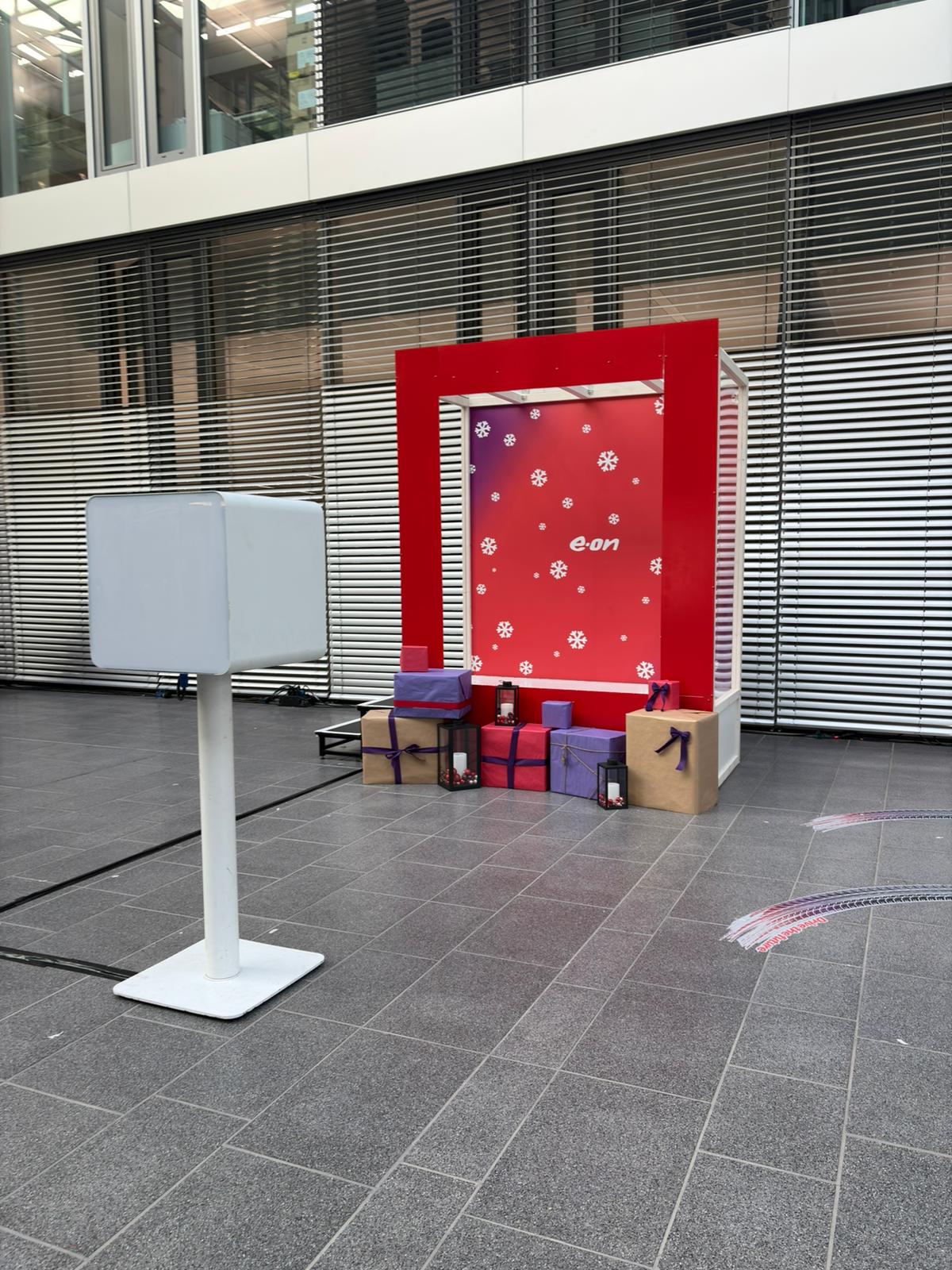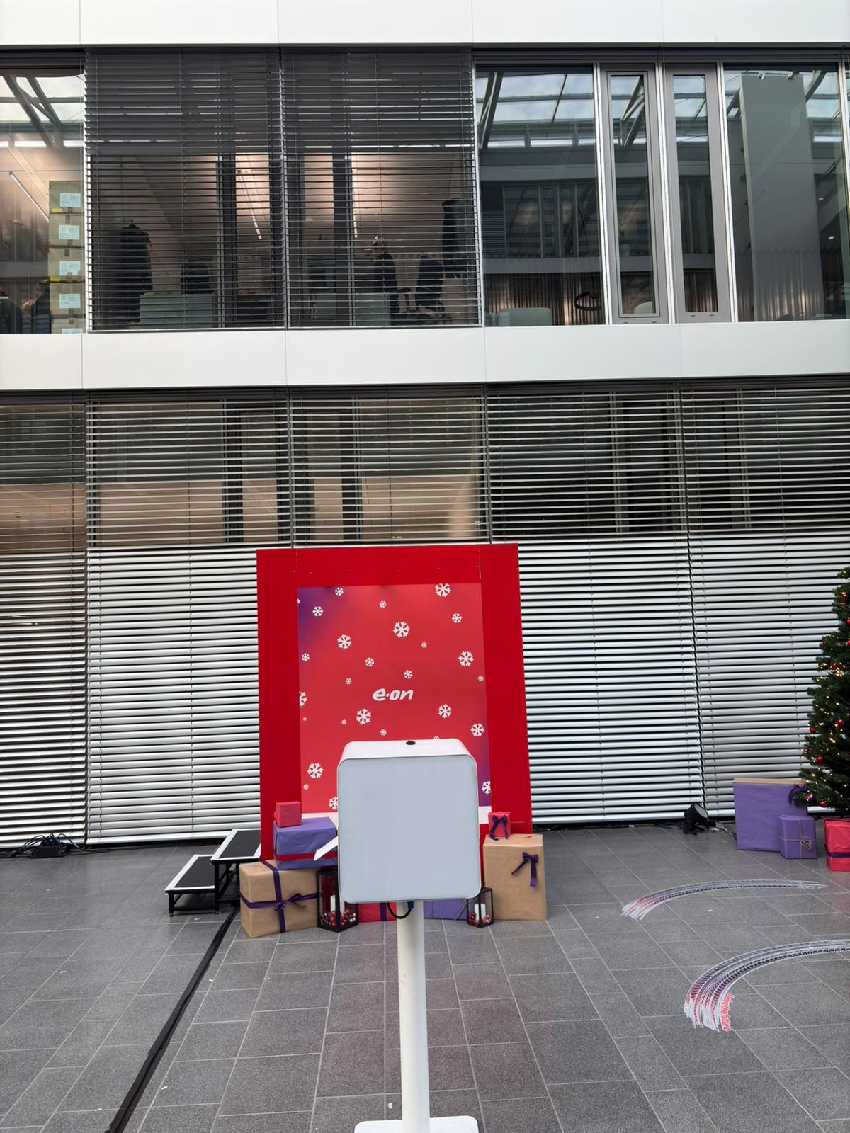 Bei dieser Weihnachtsaktion mit Photobooth stand eine aufmerksamkeitsstarke Inszenierung im Vordergrund, die Gäste im EON Headquarter direkt abgeholt hat. Gemeinsam mit der Lieblingsagentur wurde für EON in Essen ein weihnachtliches Setup umgesetzt, das sowohl visuell als auch funktional überzeugt hat und gleichzeitig einen klaren Mehrwert für die Gäste geboten hat.
