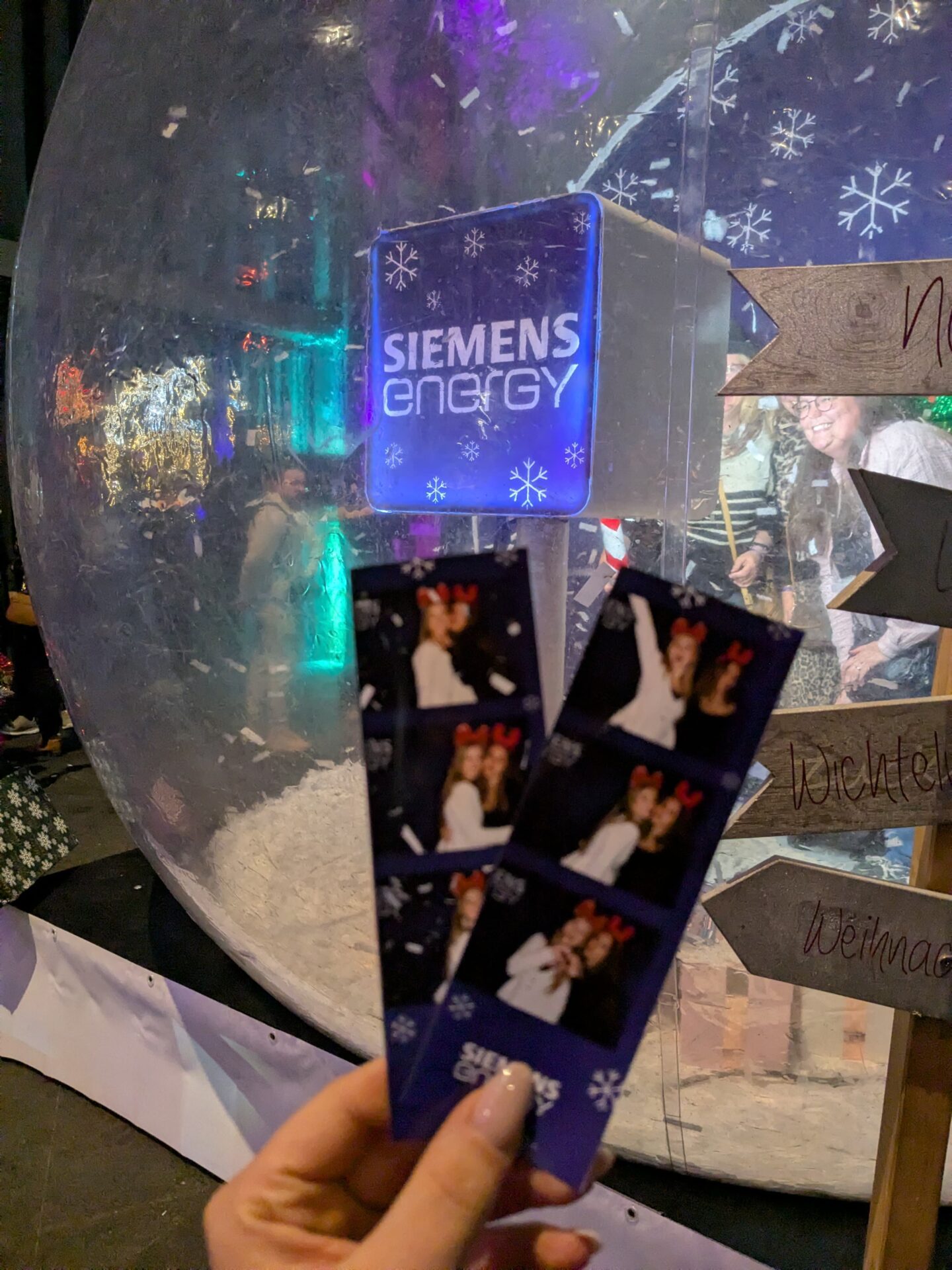 Die XXL Schneekugel entwickelte sich dabei rasch zum visuellen Highlight, denn sie war schon aus der Entfernung sichtbar. Gleichzeitig funktionierte sie nicht nur als Blickfang, sondern lud die Gäste aktiv zum Mitmachen ein. Genau diese Mischung machte sie zu einer starken Weihnachtsidee für eine Firmenfeier.